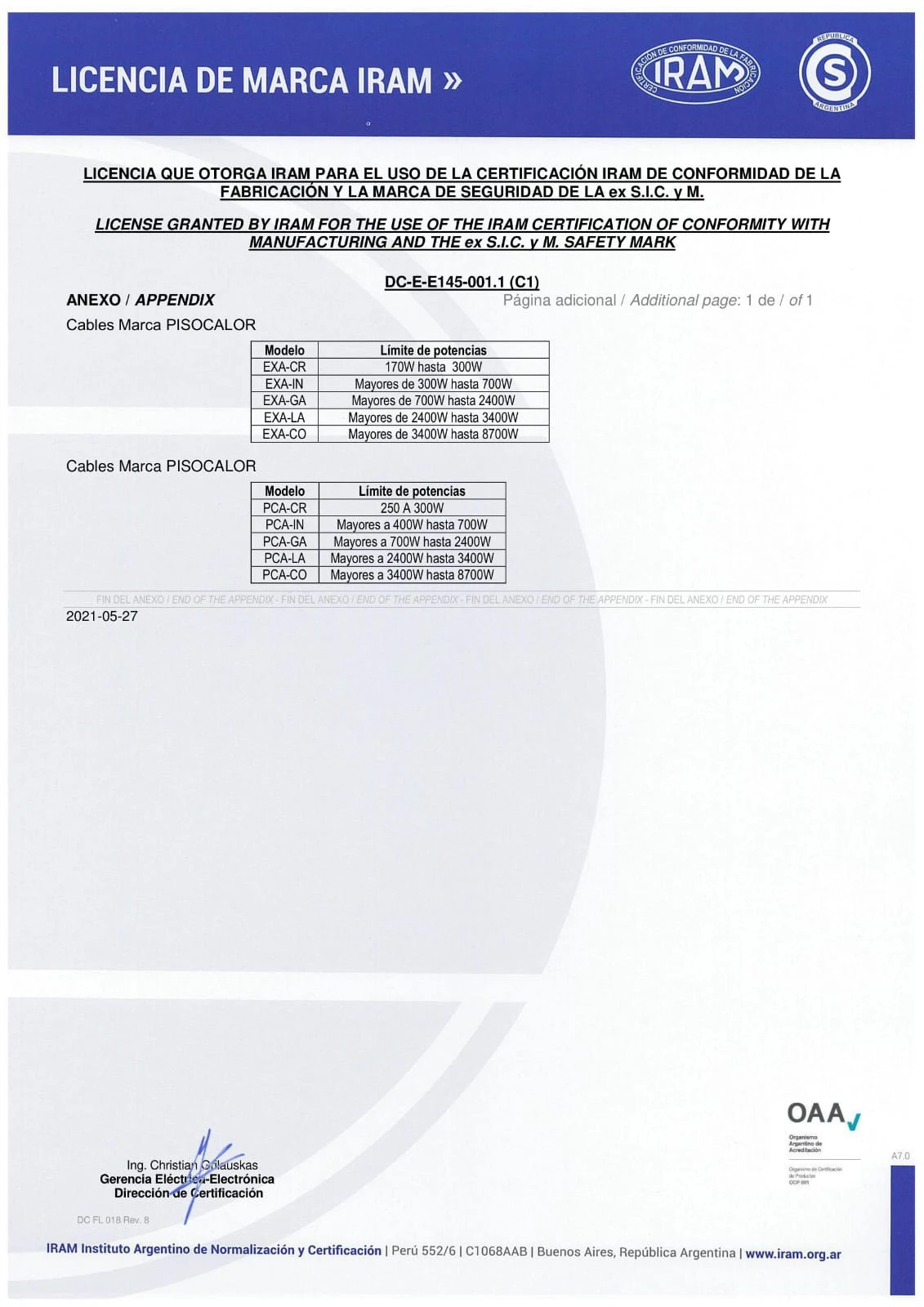 TRAC-550W - CABLE CALEFACTOR TRACING (CAÑERIAS) 550W 22MTS (certif. IRAM) - Piso Calor